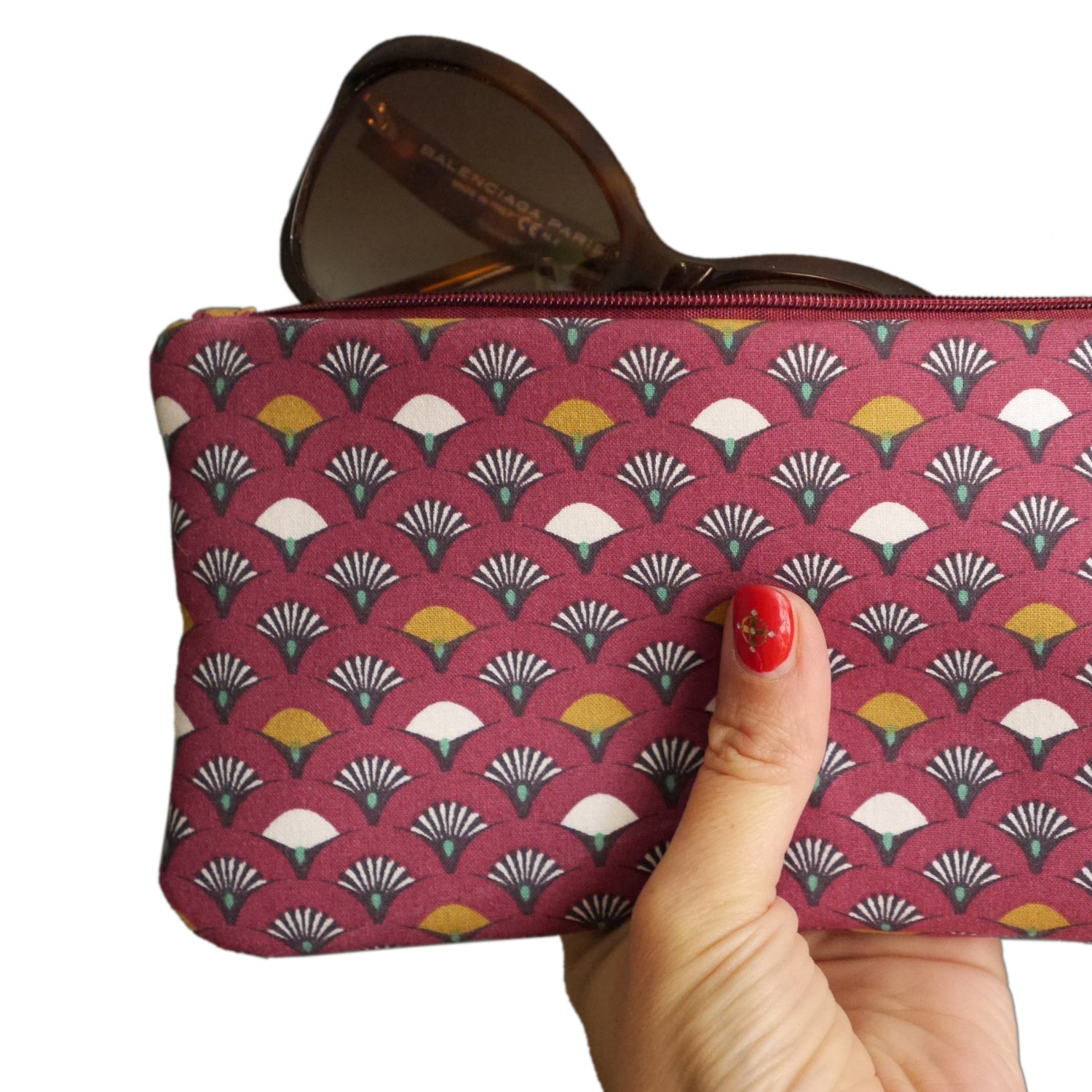 Glasses case pouch bag fabric Japanese fan garnet red zipped gift woman accessory bag unique original